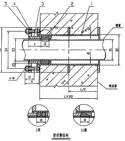 2、柔性防水套管一般穿過(guò)墻壁之處受有振動(dòng)或有嚴(yán)密防水要求的構(gòu)筑物。